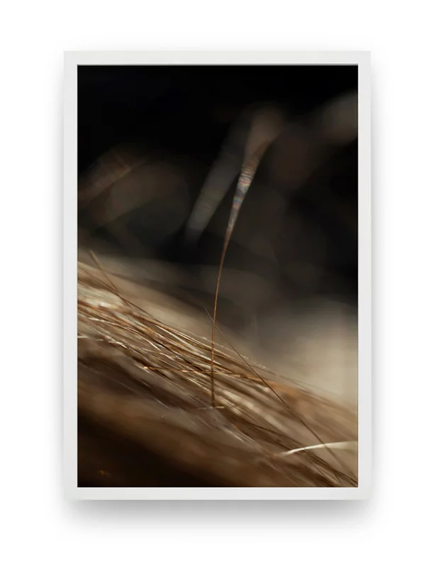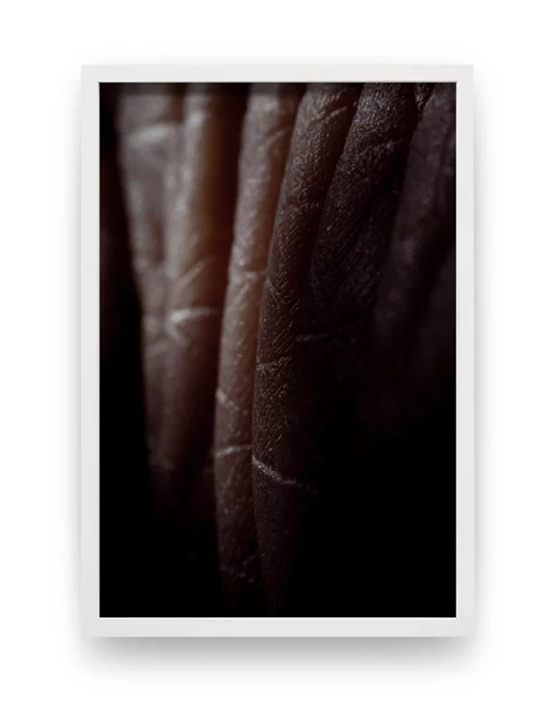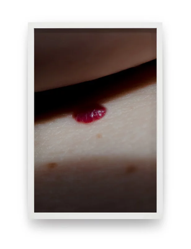 An exploration of the female body. By using macrophotography and imagining that I am exploring a completely new territory, new perspectives on the body, which are both familiar and alien when closely examined, begin to emerge. I see volcanic rocks or elephant skin or the scale-like skin of a fish. A leg hair, usually overlooked among many or mostly shaved, stands out like a plant stem. Skin and hair, in their protective function, become visibly pronounced, radiating a robustness not traditionally attributed to the female body. The body appears in its authentic nature.